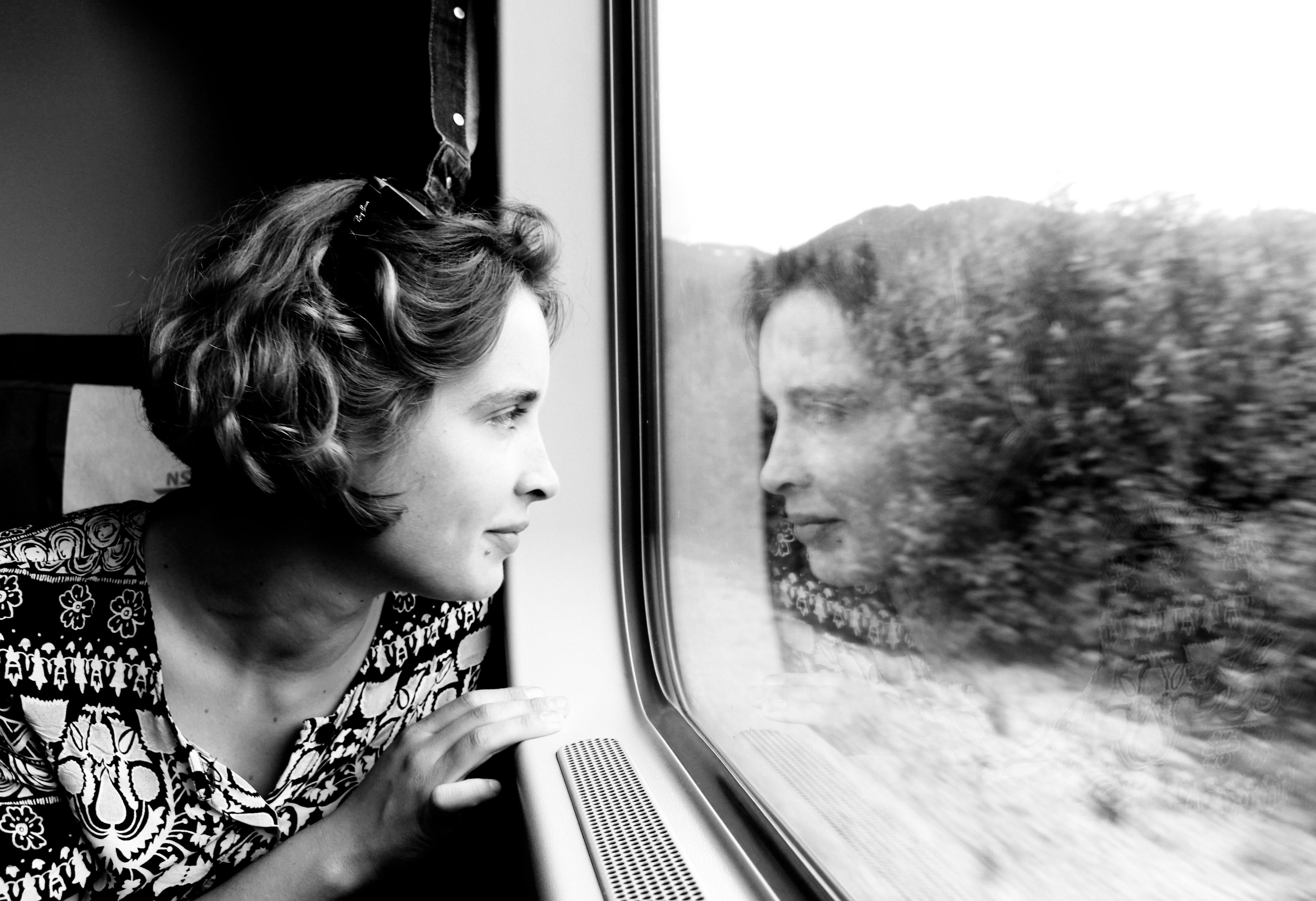 Amalie face to face, on a train. Bergen to Oslo, Norway 2018.